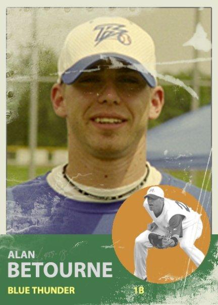 The images added to this memory are a promo baseball card of Alan Betourne, a post-game photo of some Blue Thunder players, and a photo of the team's magnet schedule. After the 2007 the Tarrant County Blue Thunder relocated to McKinney Texas (still in the Dallas Fort Worth area) and played the 2008 CBL regular season. After that season the Blue Thunder folded and did not return to professional baseball.