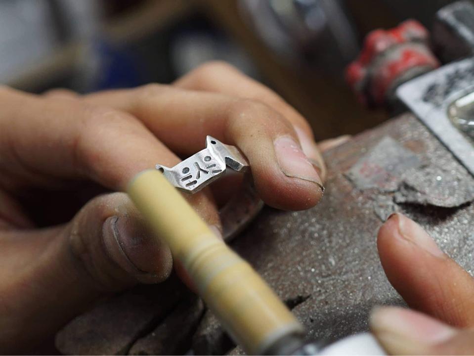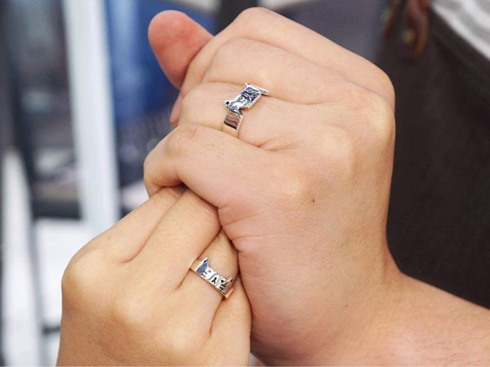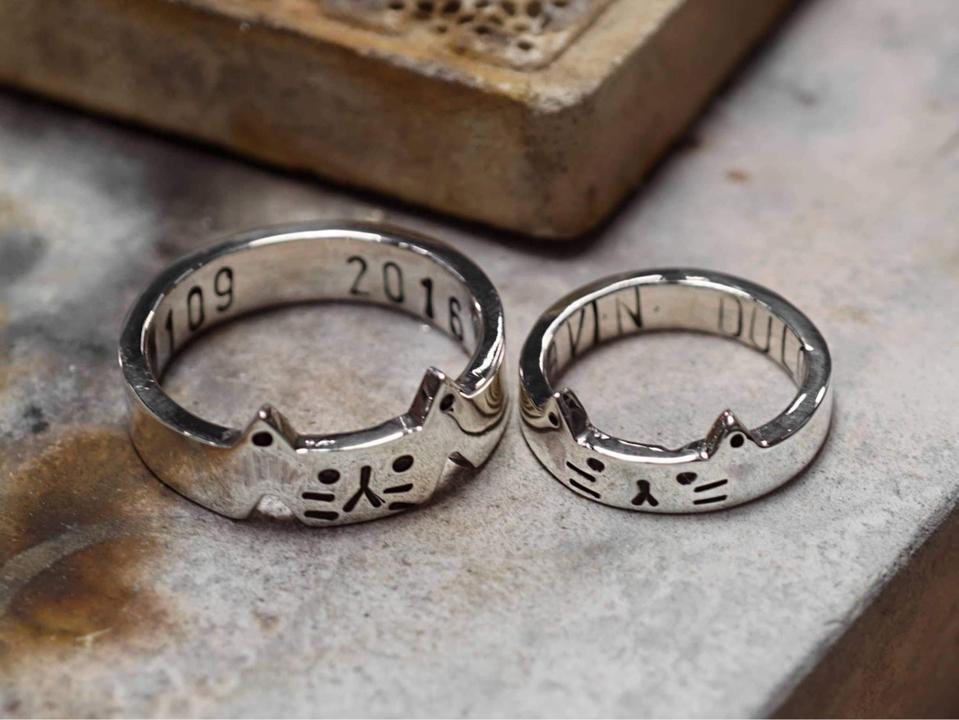 The first hand-made couple rings made together by me and Kevin before I go to Europe for 1 year exchange. Since I really like cats so we decide to do the cats design, one is bigger and another is the small cat, which represent us.