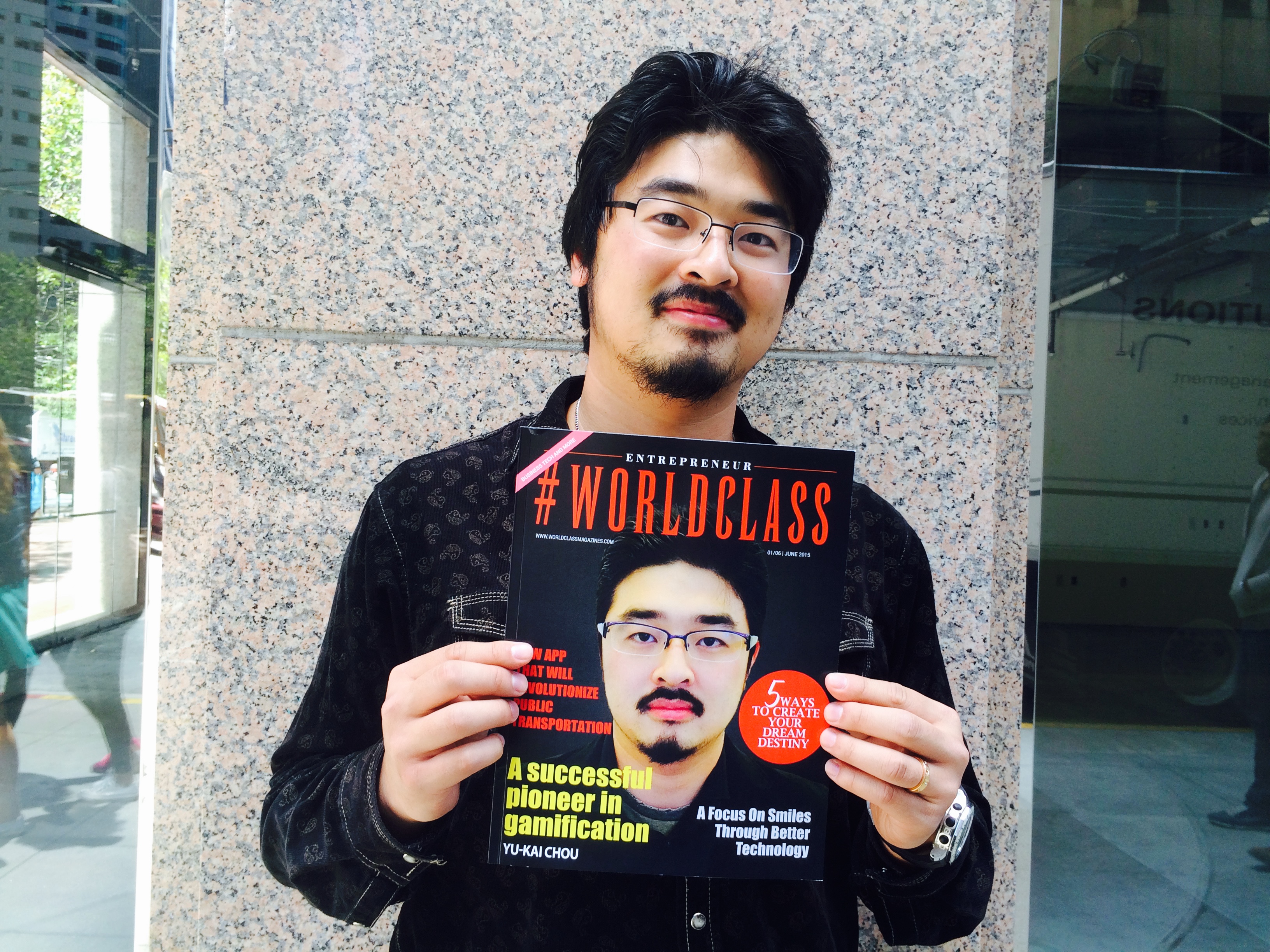 This was a photo I took when I saw myself on the front cover of Worldclass Magazine. It's not a very prestigious magazine per se, but it was the first time I was on the front cover of any magazine. Needlesstosay, I was really exciting and happy, so I took a picture to commorate it. It happens that I was on the side Market Street, and I asked a bystander to take the picture for me.